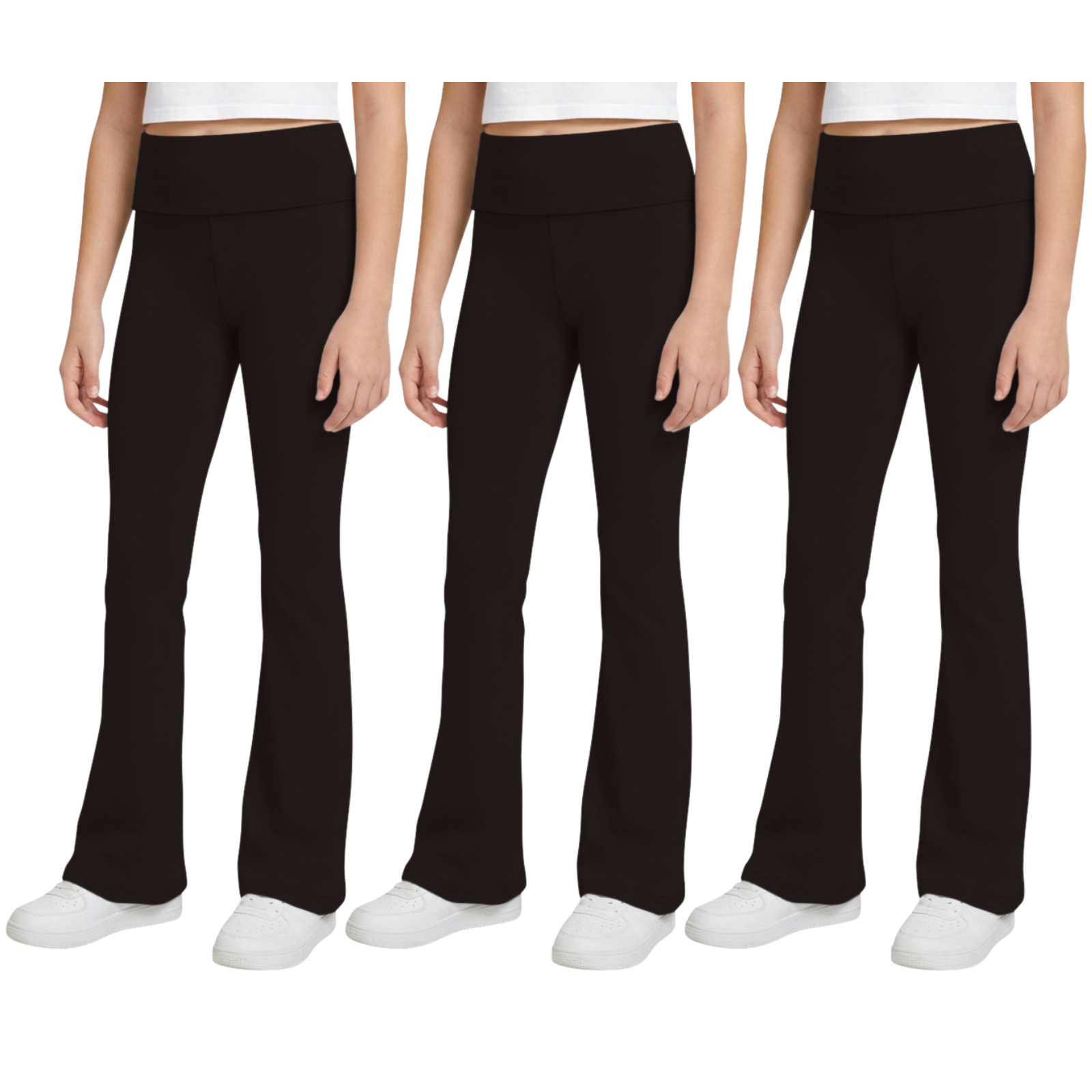 Sweet Hearts 3-Pack Girls Leggings- Foldover Pants Wide Leg Flare Leggings for Girls Clothes Made in USA